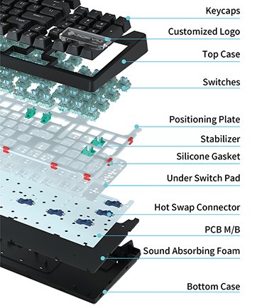 Combination with users’ concern above, GDEVIL recommend the Tri-mode mechanical keyboard G515 PATRIOT, it’s assembled DIY keyboard, hot-swap mechanical keyboard, Gasket structure, it’s easy for users to custom the keyboard freely without soldering, change the keycaps, switches, stabilizer, improve the typing feeling/sound.