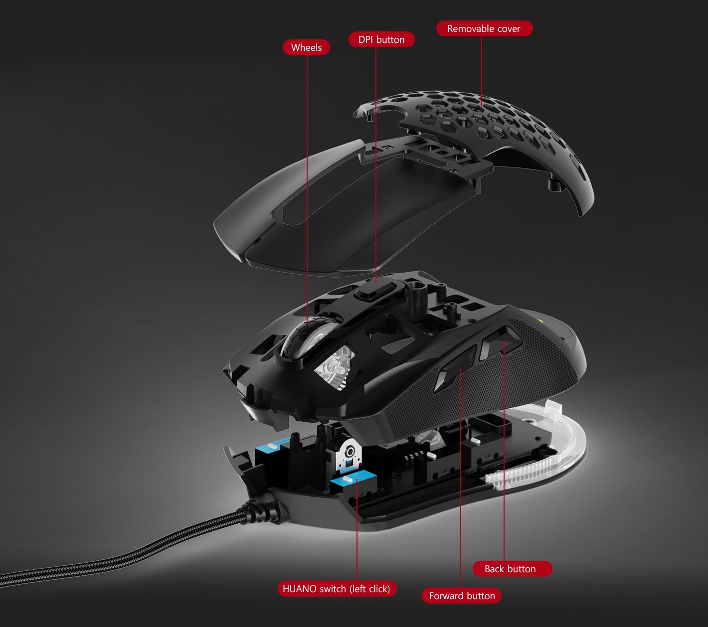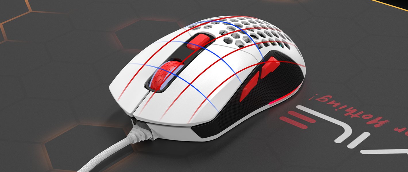 Unlike previous heavy, dull mice, it adopts an optimal 67g lightweight for faster gliding and smooth but accurate pointing.
