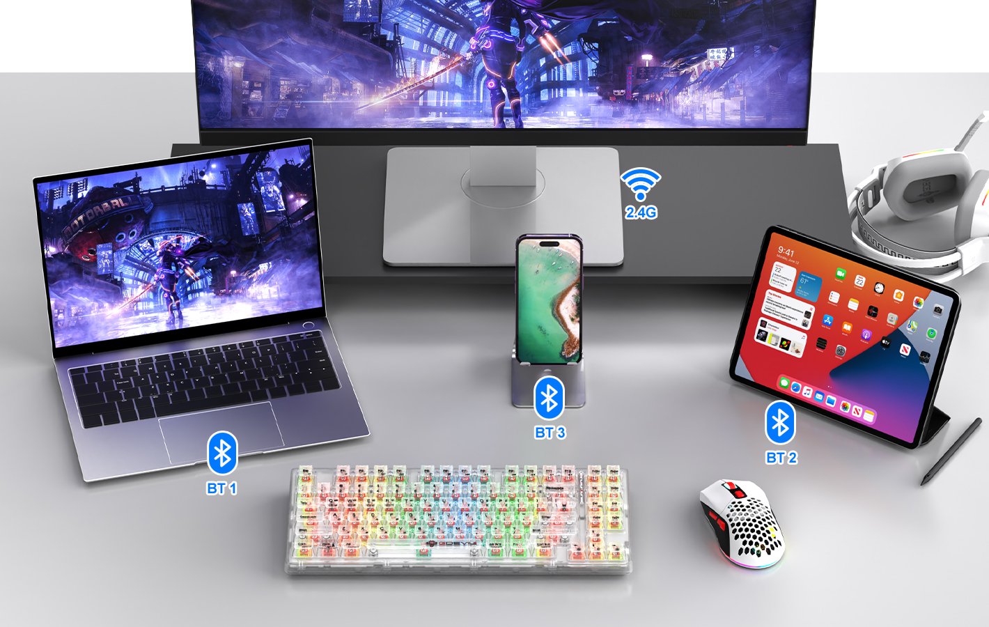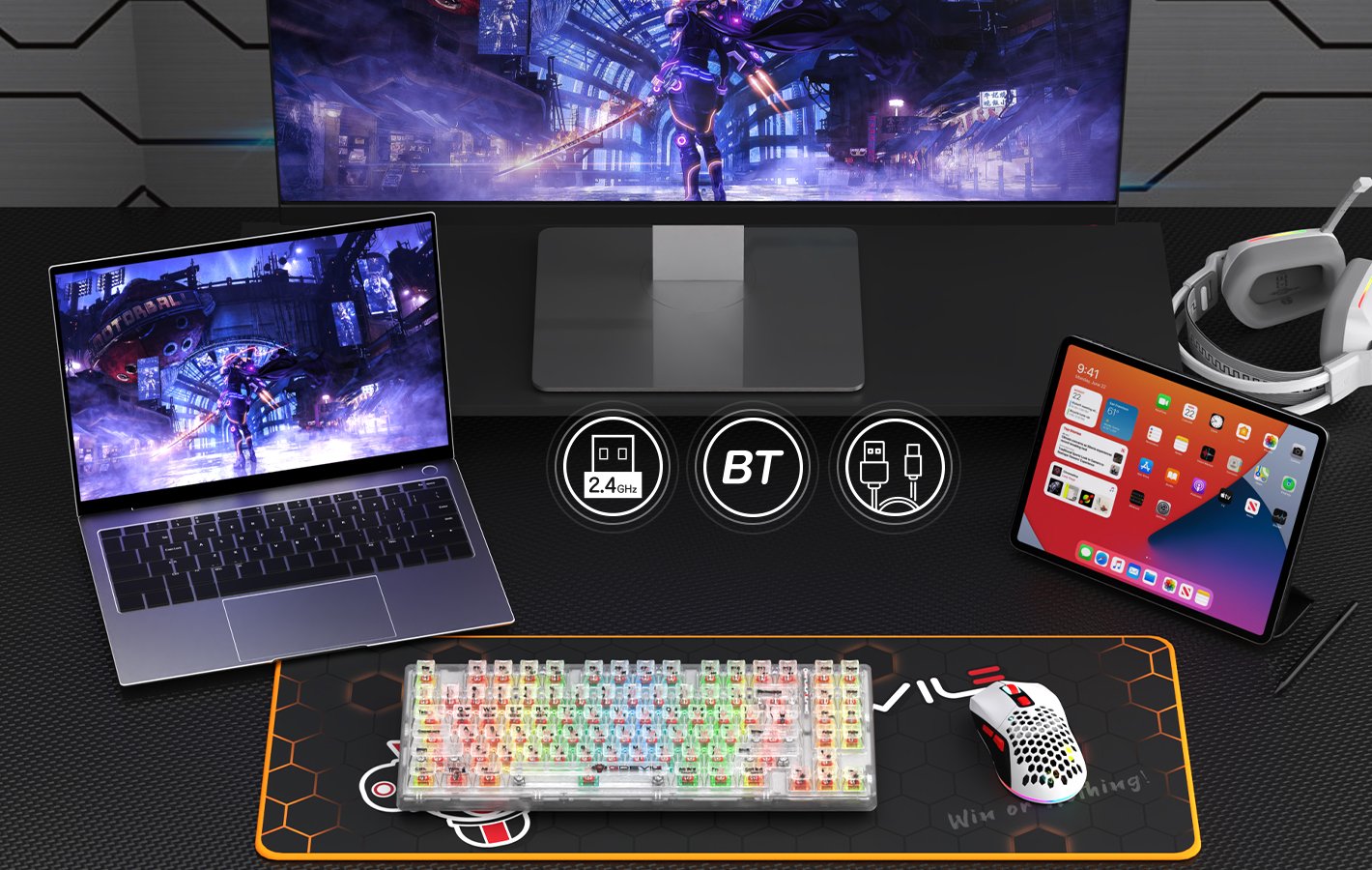 • Product Type: Triple Mode Hot-Swap Transparent Mechanical Keyboard