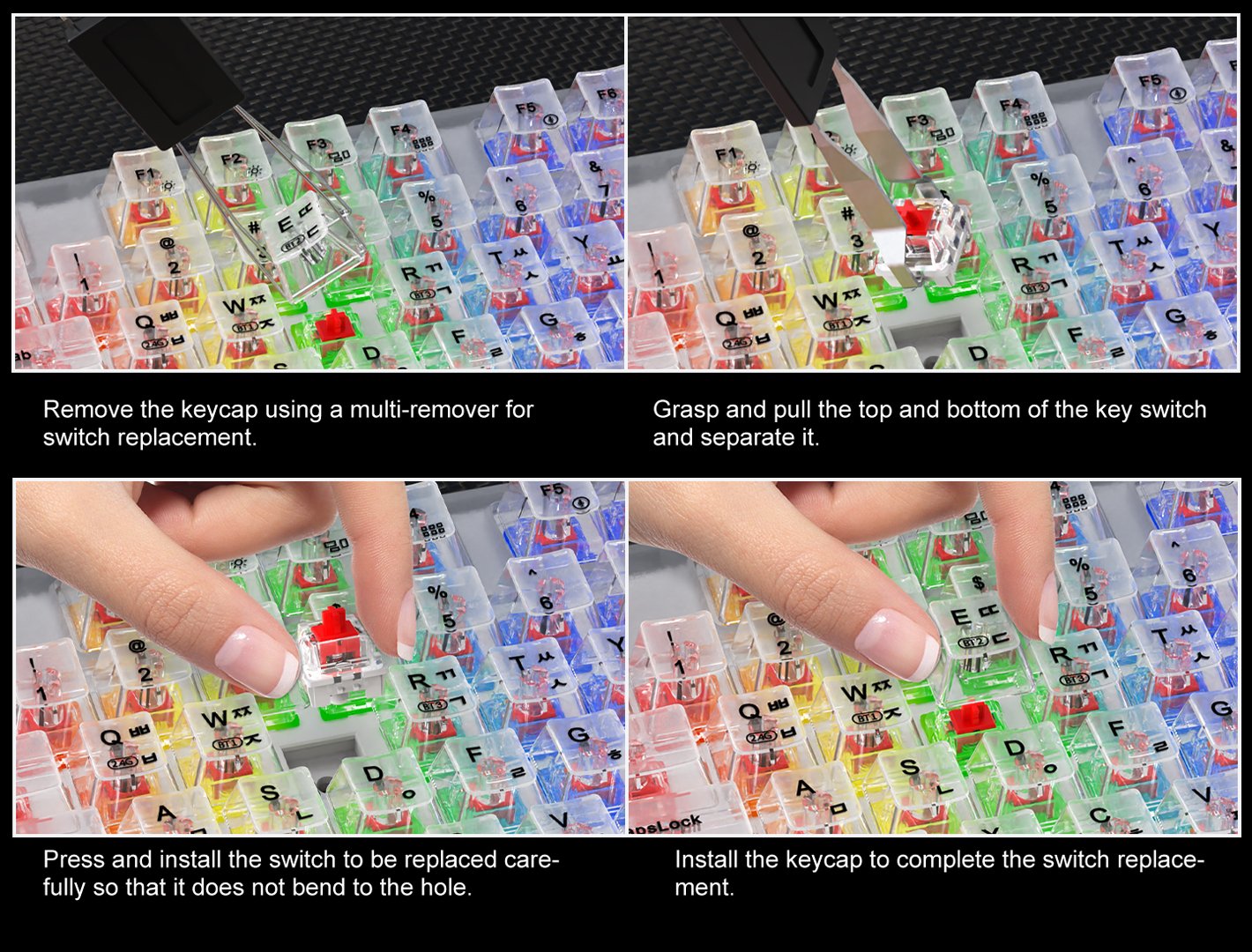 The easy-to-repair hot-swap method allows easy maintenance when some keys are not recognized or when you want to change the options for a particular key.
