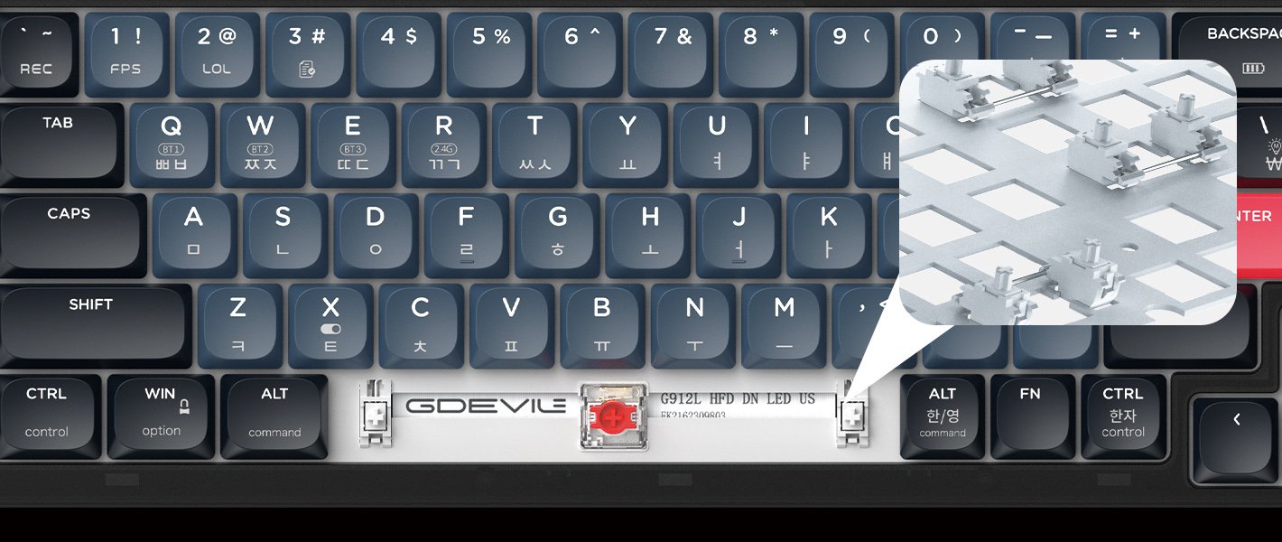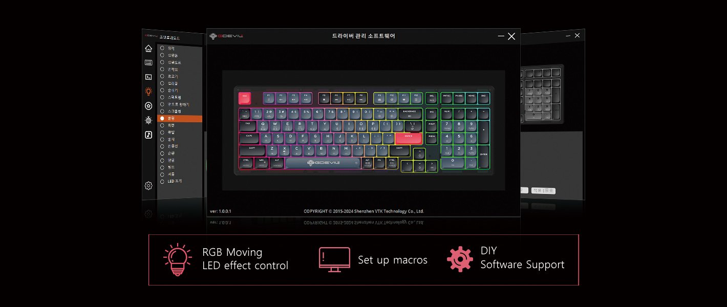 Various customizations such as shortcuts, macros, LED effects, and key mapping are possible through the provided Gdeville G712 keyboard-only software, which can be optimized and used according to the environment of use.
