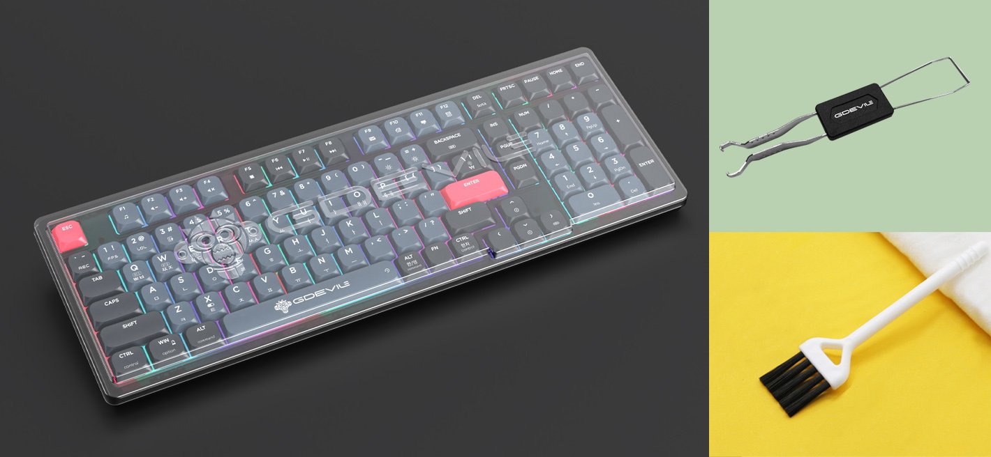 A transparent dust cover is applied to protect the keyboard from dust, foreign substances, etc. The basic keycap remover and cleaning brush are faster and more convenient when separating the keycap, and it is easy to clean between gaps, so you can use it comfortably for a long time.