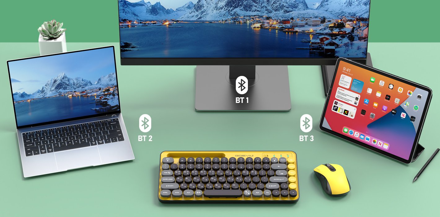 Whenever using various wireless devices such as desktops, laptops, tablet PCs, and smartphones, up to three (BT 1/BT 2/BT 3) can be paired at the same time and easily switched to shortcuts.