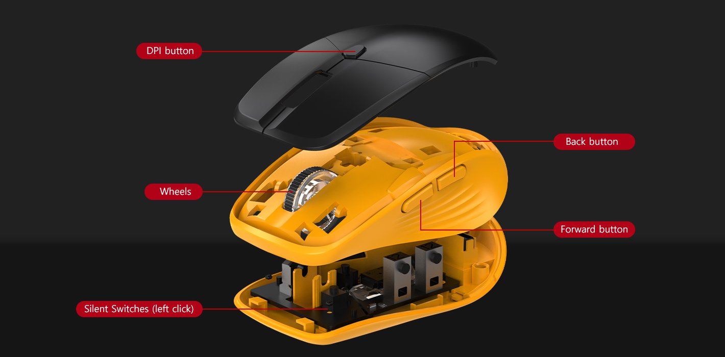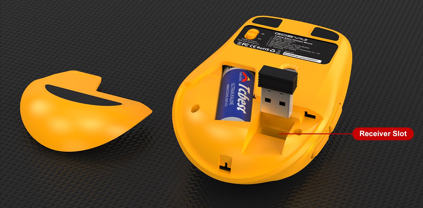 The interior space for the receiver is designed at the bottom of the mouse to reduce the risk of loss of small receivers and provide excellent portability and storage.