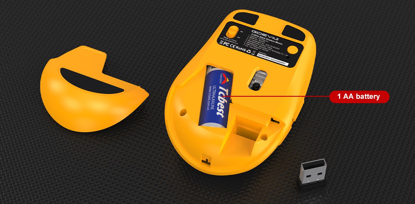 The 2.4GHz wireless technology provides a reliable connection with a long working distance of up to 10m and super high-speed rate of return, which eliminates delays, dropouts, and interference.(USB receiver is stored in the battery compartment)