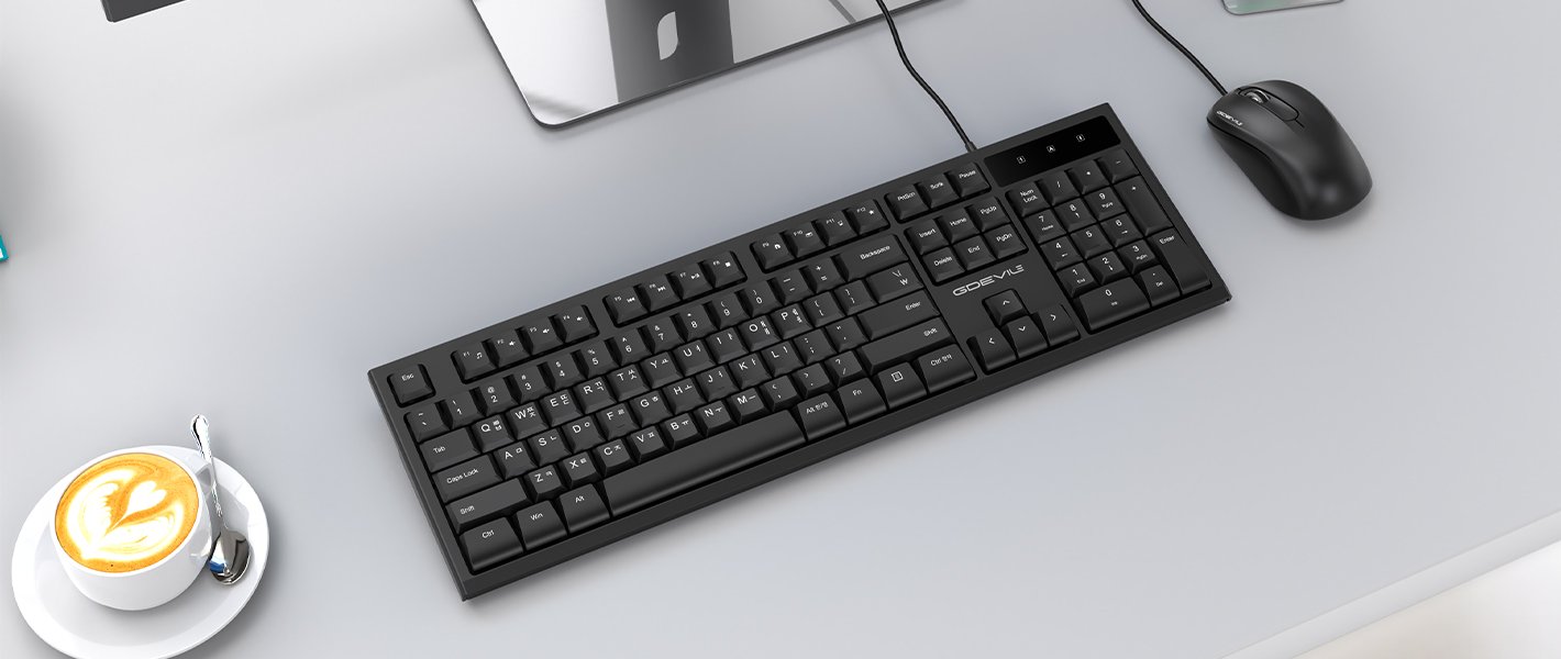 A low-noise membrane keyboard provides smooth typing to maintain a quiet environment with less noise.